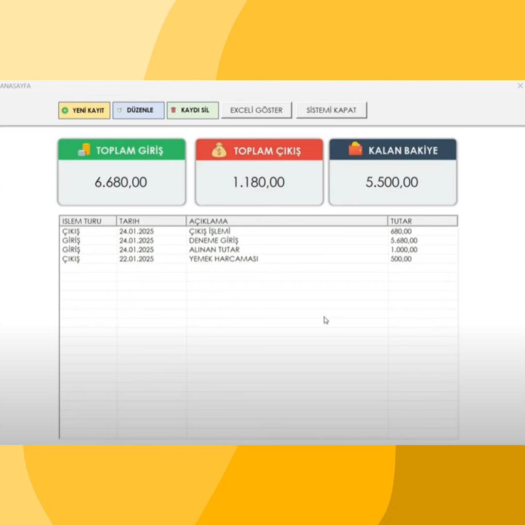 Otomatik Bakiye Hesaplama: Girilen verilere göre güncel nakit bakiyenizi otomatik hesaplar.